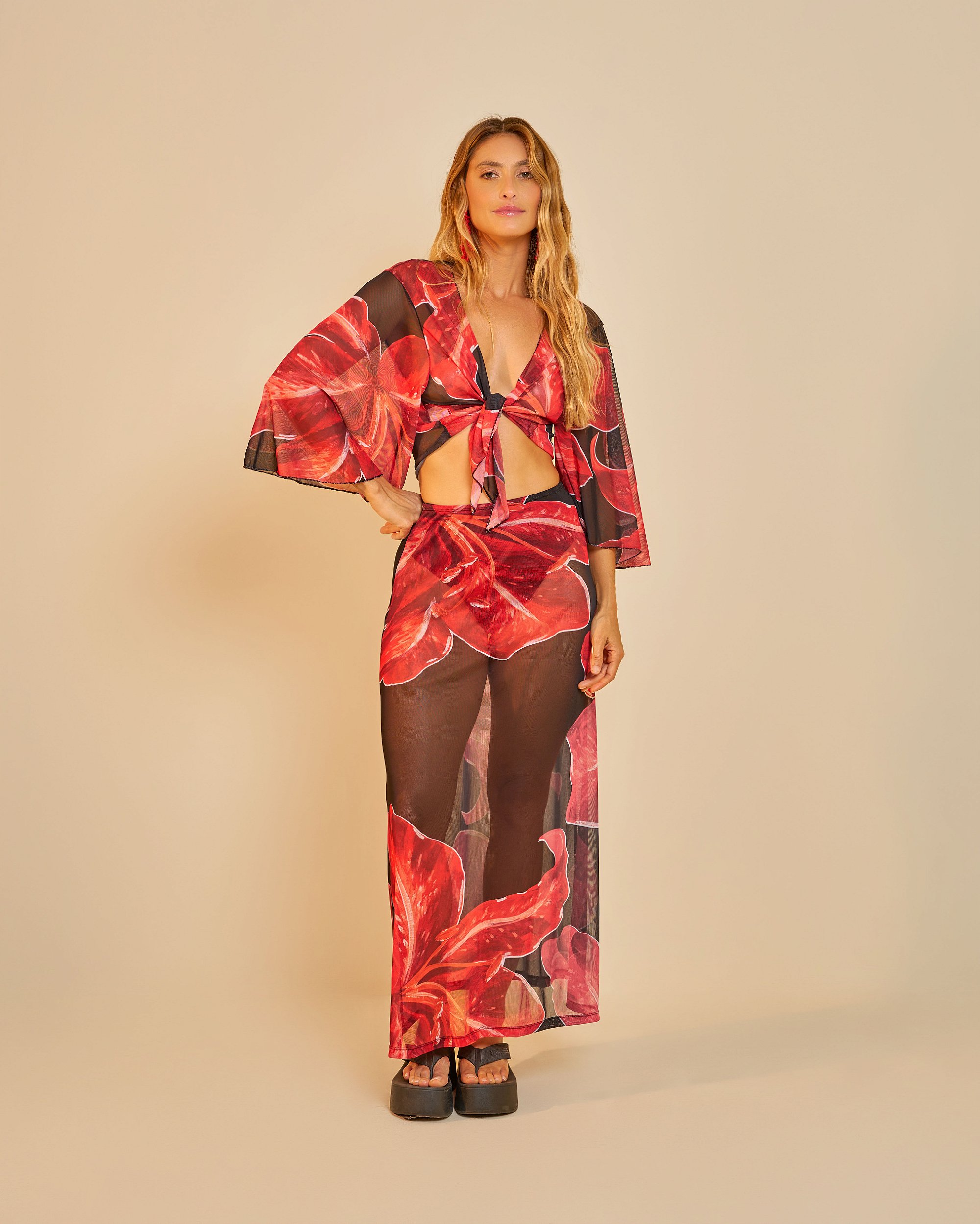 [detalhes] saia midi feita em tule ajustada ao corpo. acompanha hot pant na cor preta.